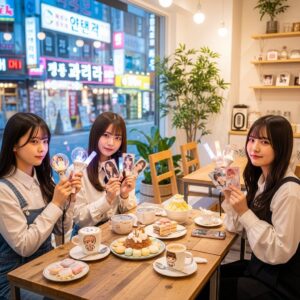 最後は、見た目も華やかなカフェスイーツでフィナーレを迎えます。MACAPRESSO(マカプレッソ)のボリューミーなトゥンカロンや、Seoul Cafe(ソウルカフェ)の糸かき氷など、新大久保には別腹専用の映えスイーツが充実しています。冷たいドリンクと共に甘いクリームやフルーツを流し込めば、辛さ、甘さ、塩気の全てが満たされる至福の瞬間が訪れます。カロリー計算は一旦忘れて、この幸福な甘辛ミックスの波に身を委ねてみてはいかがでしょうか。